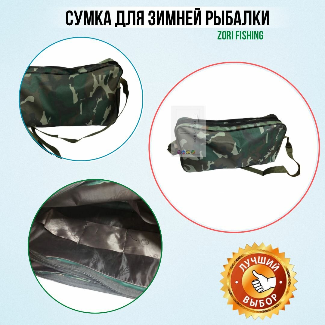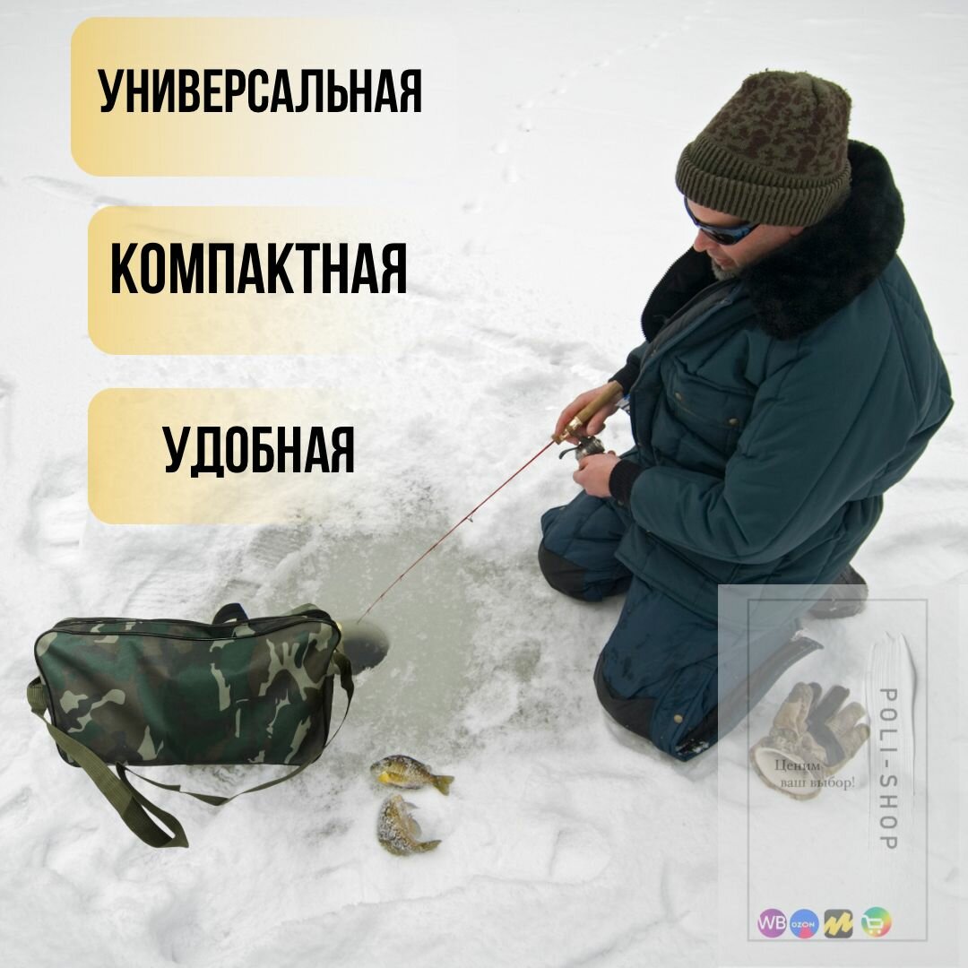 Сумка для жерлиц / Сумка для зимней рыбалки / чехол рыболовный камуфляжный на 20шт ( с 2 отсеками) интересное: