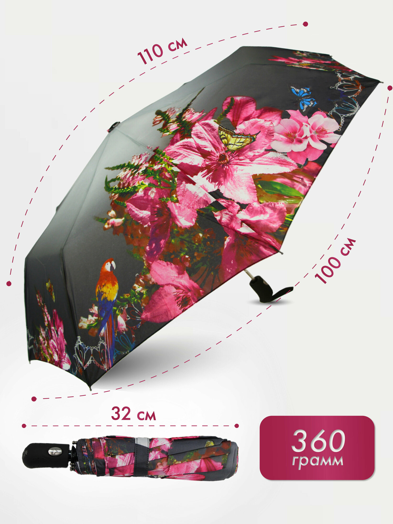 | Плюсы: | большой, красивый, быстро раскрывается, покупкой довольны. |