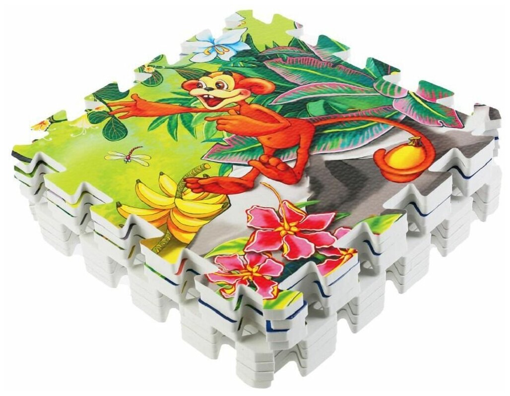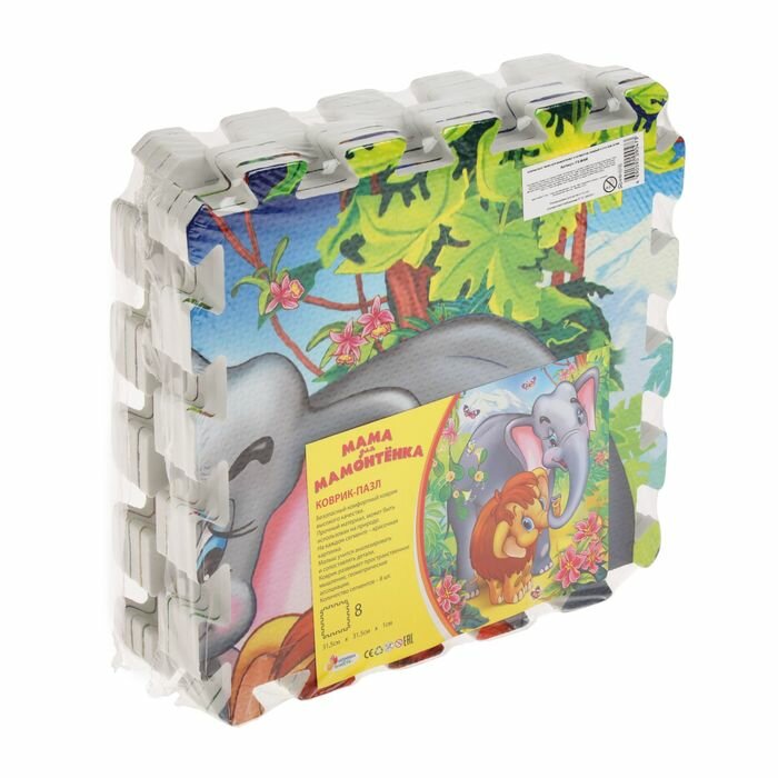 Коврик-пазл Играем вместе Мама для мамонтенка 8 элементов 31,5 х 31,5 см каждый