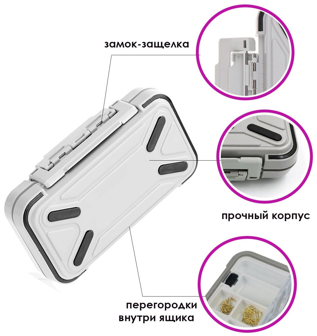 | Отзыв: | сама коробка хорошая на вид, пластик конечно не ударопрочный но нося в сумке точно не чего не случиться, под резину, воблера и чебурашек самое то? |