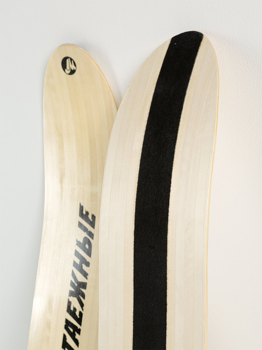 Лыжи охотничьи деревянные Маяк таежные 180 х 20 см с камусом 6 см и деревянными накладками