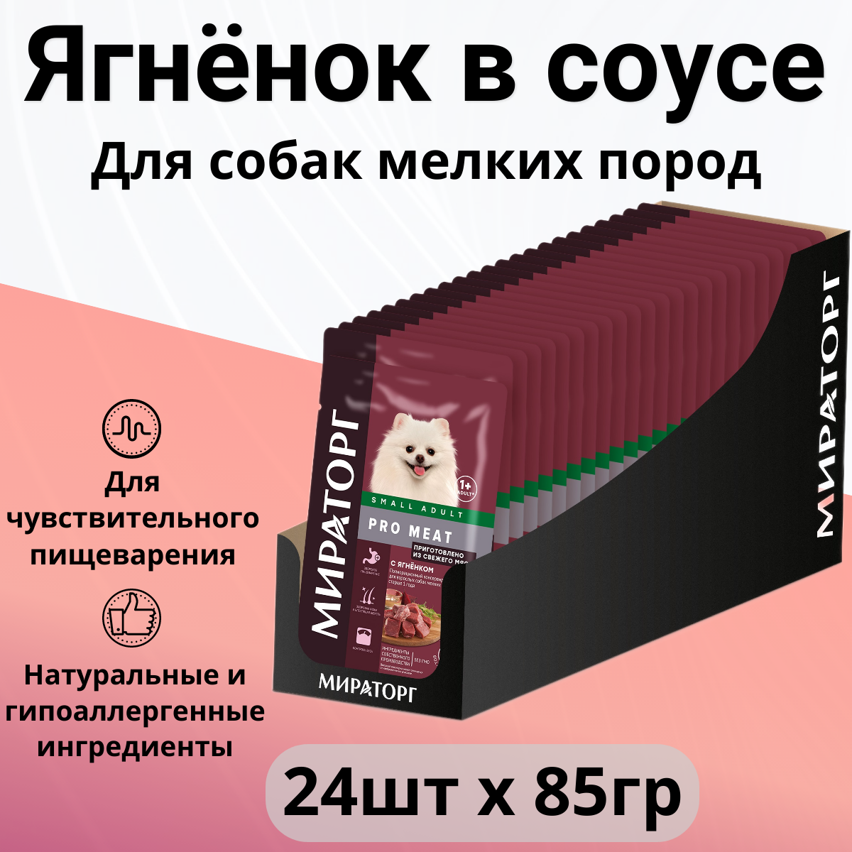 Корм влажный Мираторг Pro Meat для собак мелких пород со свежим мясом ягнёнка 24 шт по 85гр