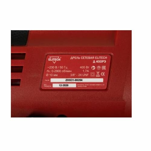 Дрель ELITECH 183679 Д 400РЭ 2900 об/мин, 400 Вт, красный/черный