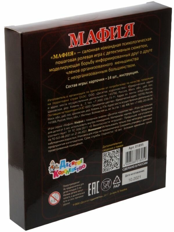 Игра настольная карточная "Мафия", "Десятое королевство", 01895