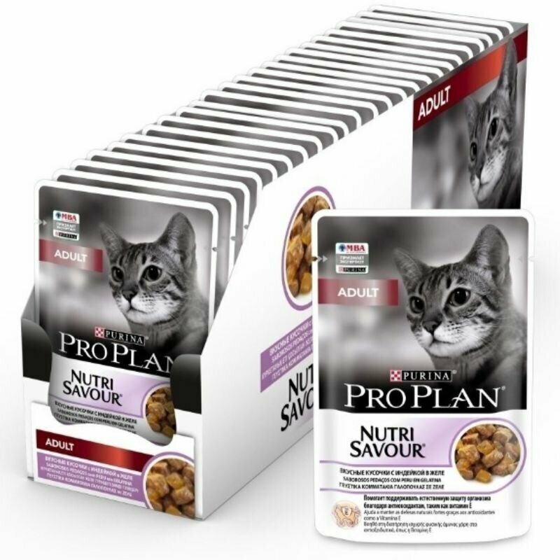 Pro Plan Nutrisavour Adult пауч для взрослых кошек (кусочки в желе) Индейка, 85 г. упаковка 26 шт