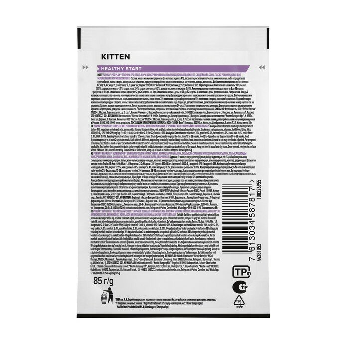 Купить Влажный корм для котят Pro Plan с индейкой 85 г (паштет)