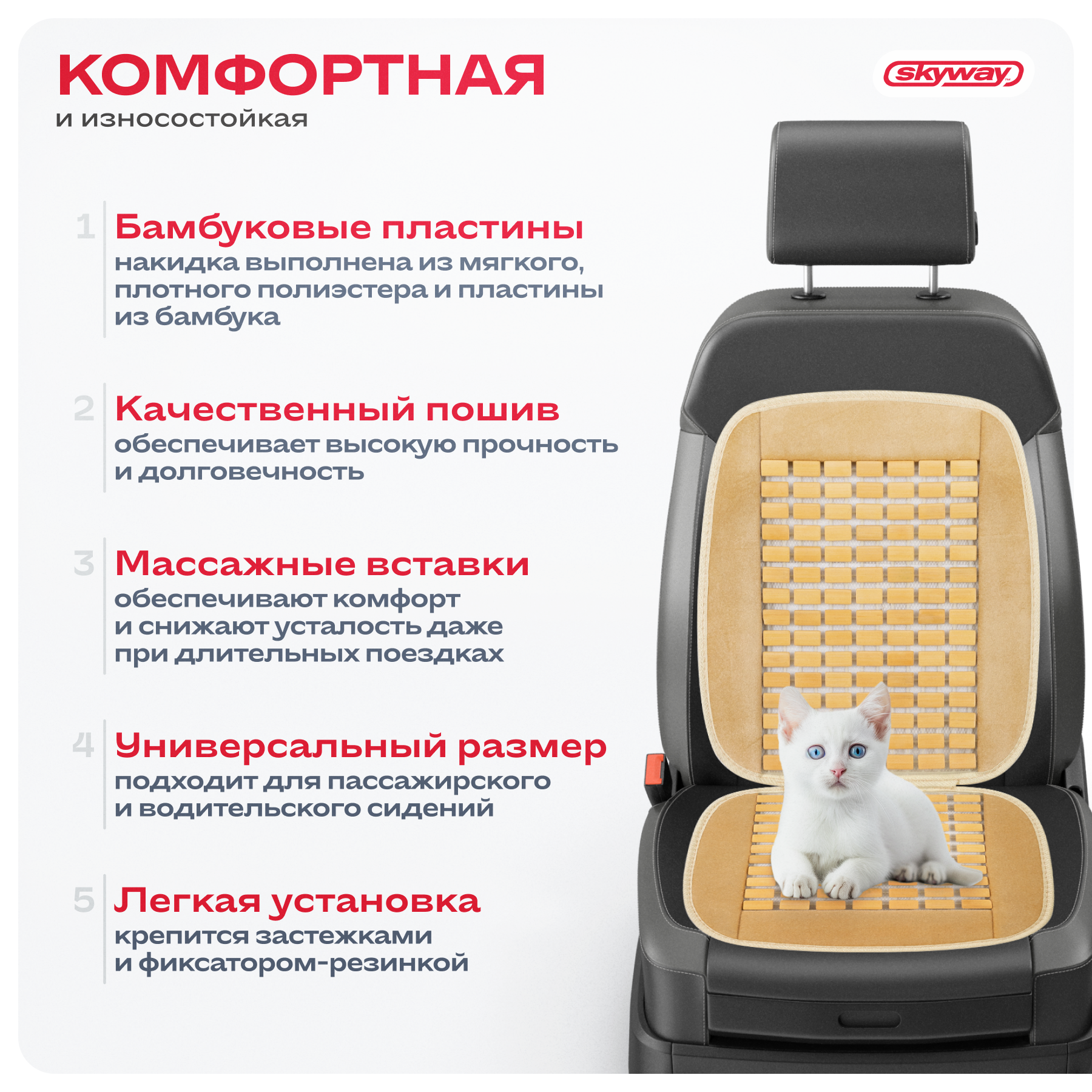 Купить SKYWAY S01302036 Накидка на переднее сидение Massage-01 бамбук/полиэстер бежевый; SKYWAY