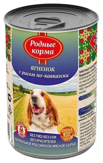 Родные корма Консервы для собак ягненок с рисом по кавказски 66048, 0,410 кг