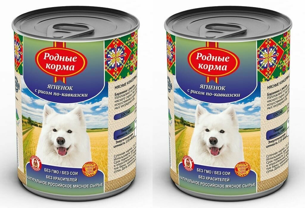 Родные корма Консервы для собак ягненок с рисом по кавказски 66048, 0,410 кг (2 шт)