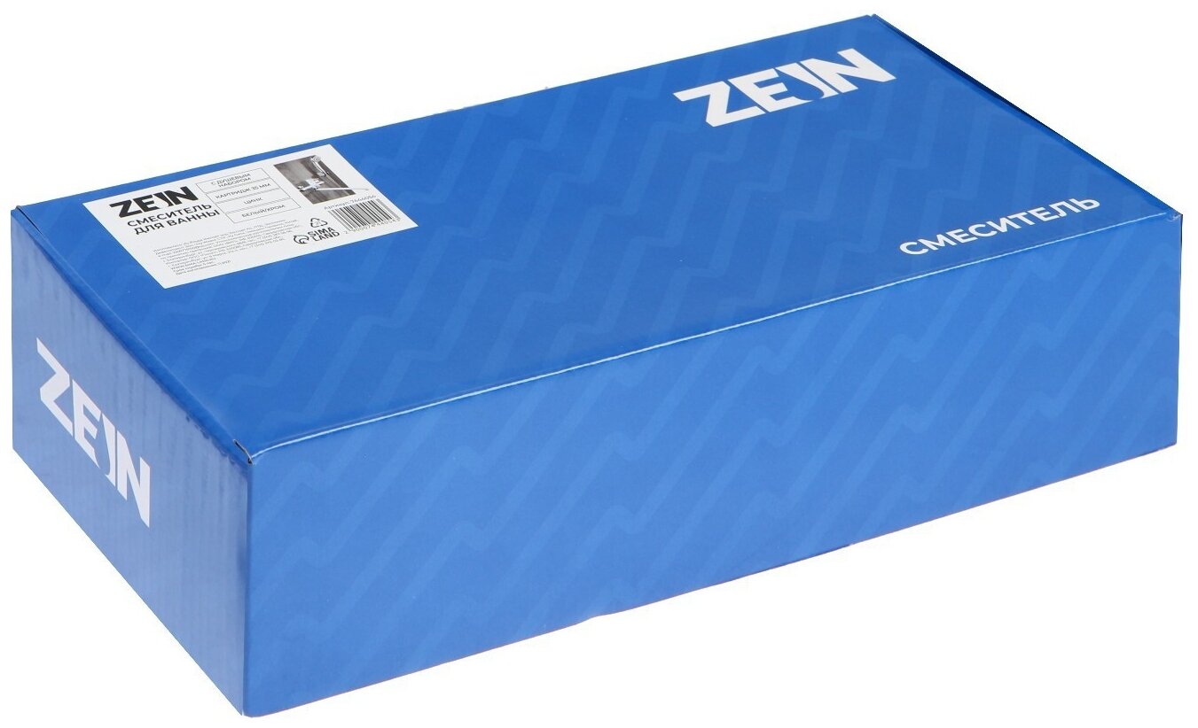 Смеситель для ванны ZEIN Z3415, картридж 35 мм, с душевым набором, цинк, белый/хром (арт. 7444054)