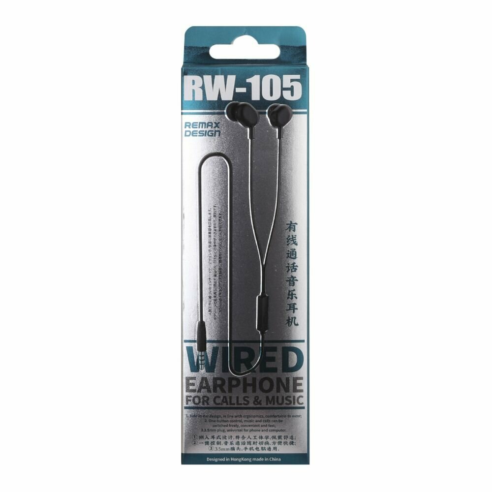Гарнитура REMAX RW-105 Earphone 3.5 мм, 1.2м, вставная (черный)