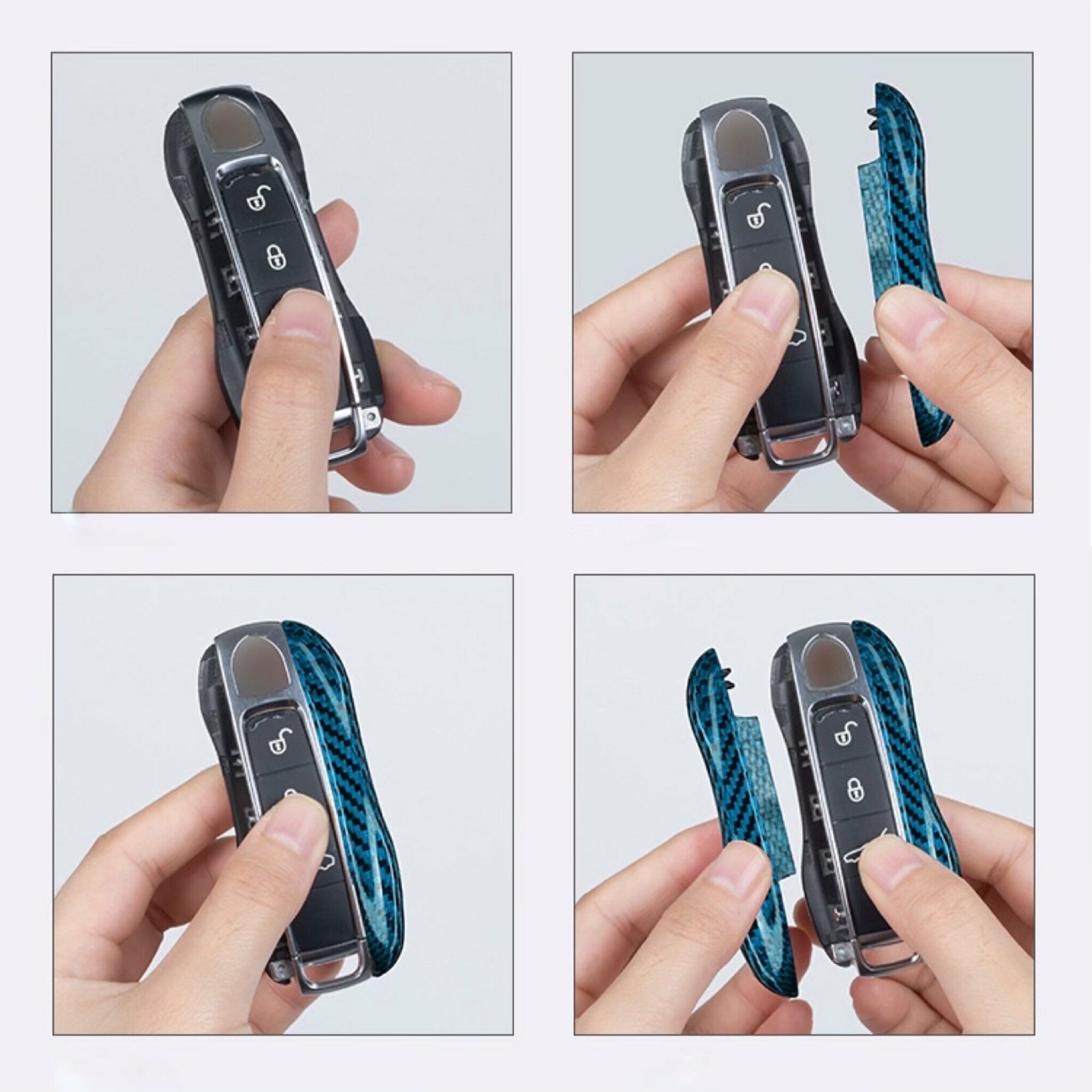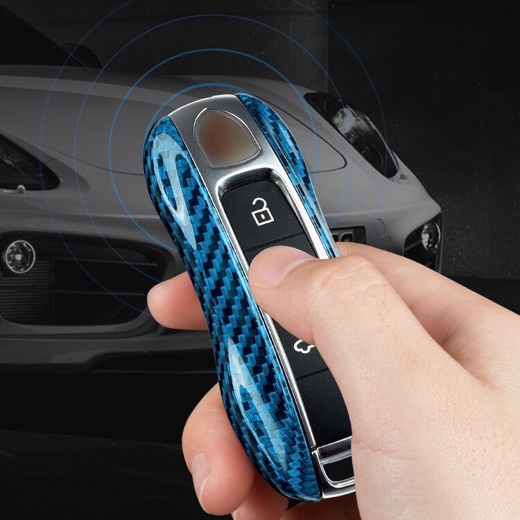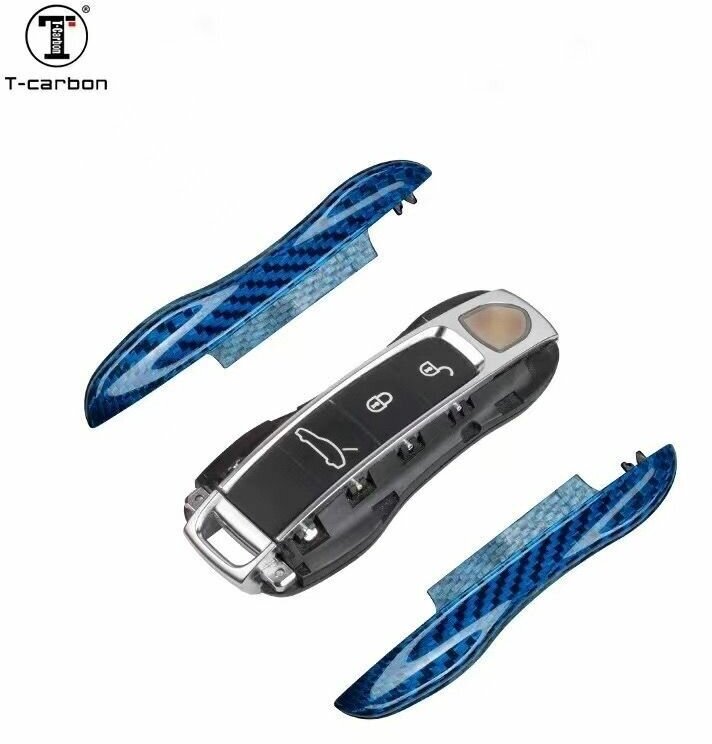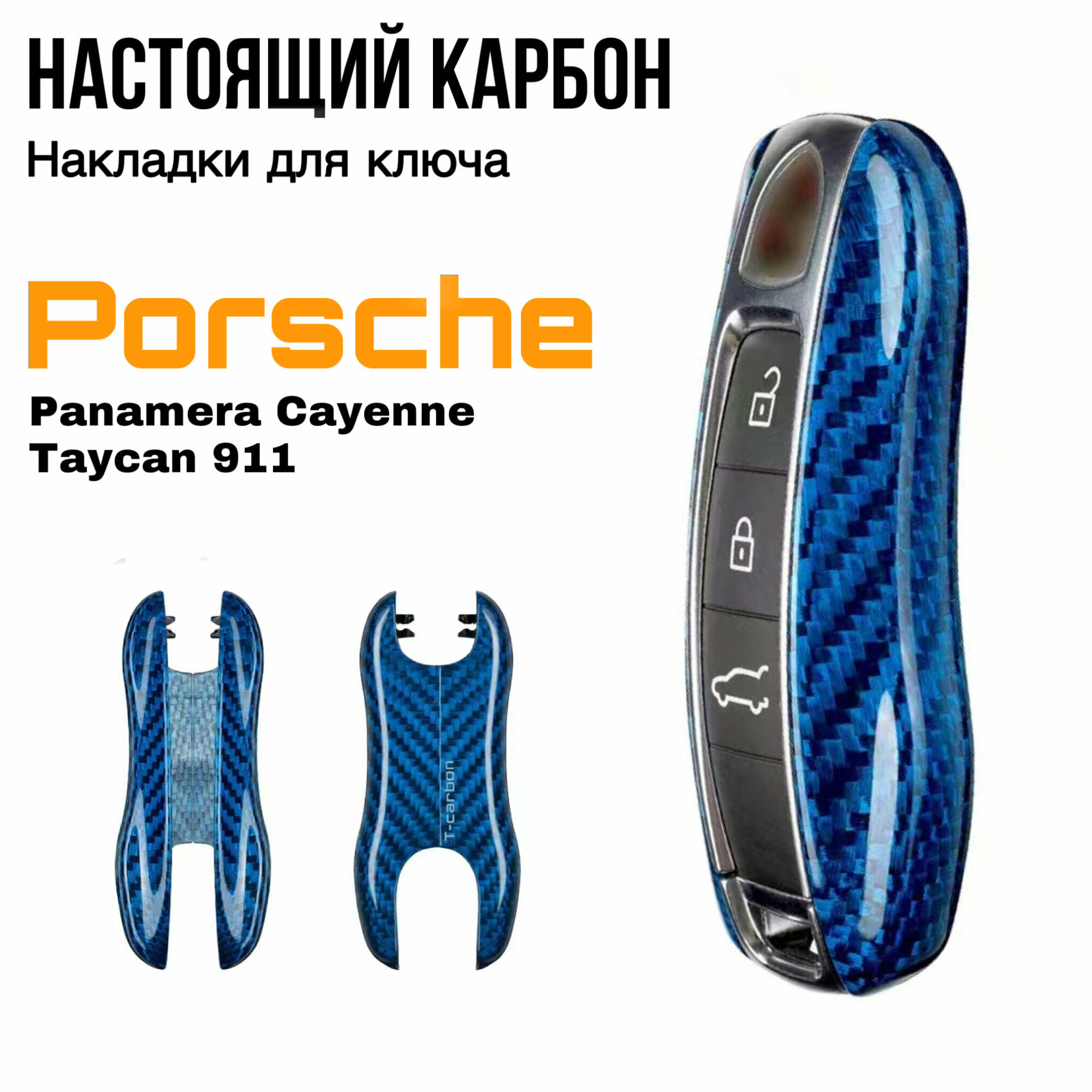 Купить Накладки для ключа Porsche из настоящего карбона синий / Чехол для ключа Порше Panamera, Cayenne, 911, Taycan