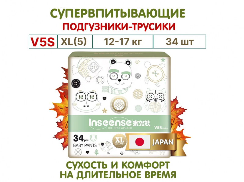 Подгузники-трусики INSEENSE V5S 12-17 кг 34 шт ХL