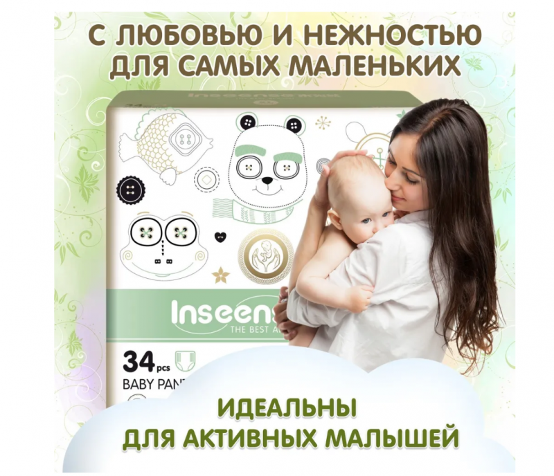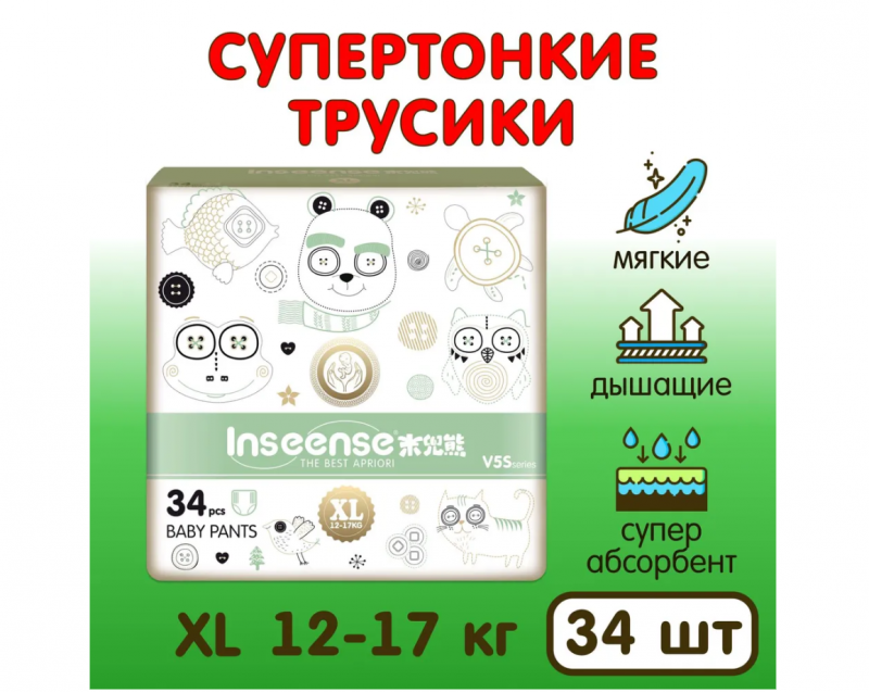 Подгузники-трусики Inseense V5S XL (12-17 кг.) 34 шт. (салатовая упаковка)