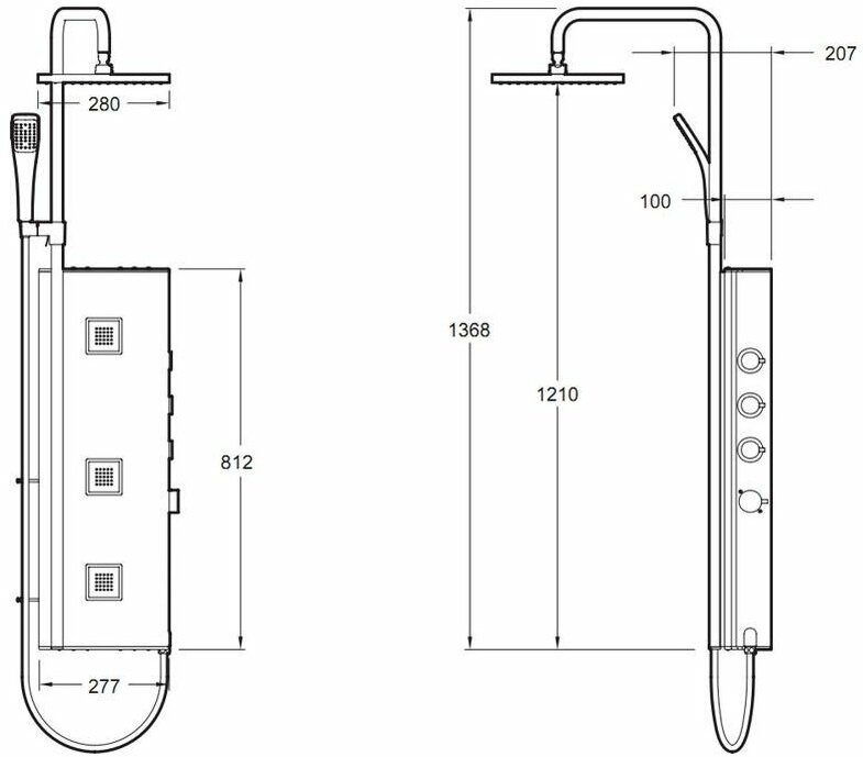 | Дополнительная информация | длина душевой панели: 812 мм; длина верхнего душа: 280 мм; ширина верхнего душа: 280 мм |