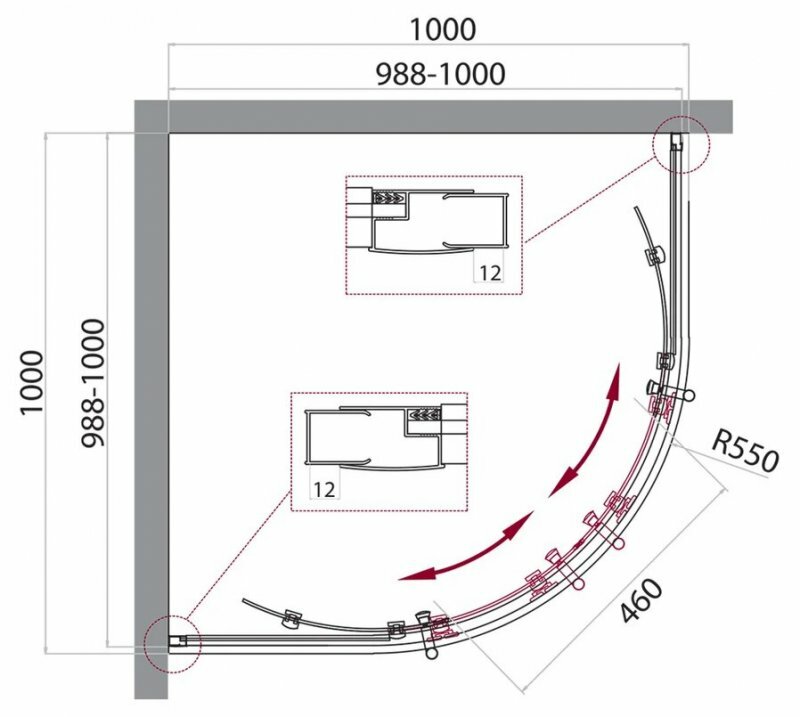 Душевой уголок UNO-195-R-2-100-P-Cr 1000x1000x1950
