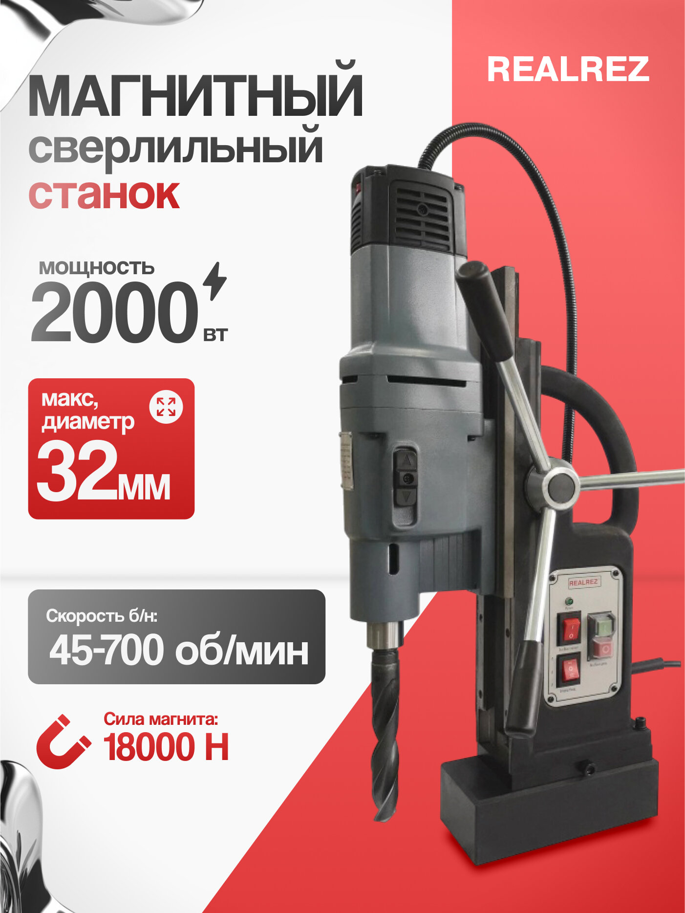 Магнитный сверлильный станок REALREZ RMD32Т 2000W интересное: