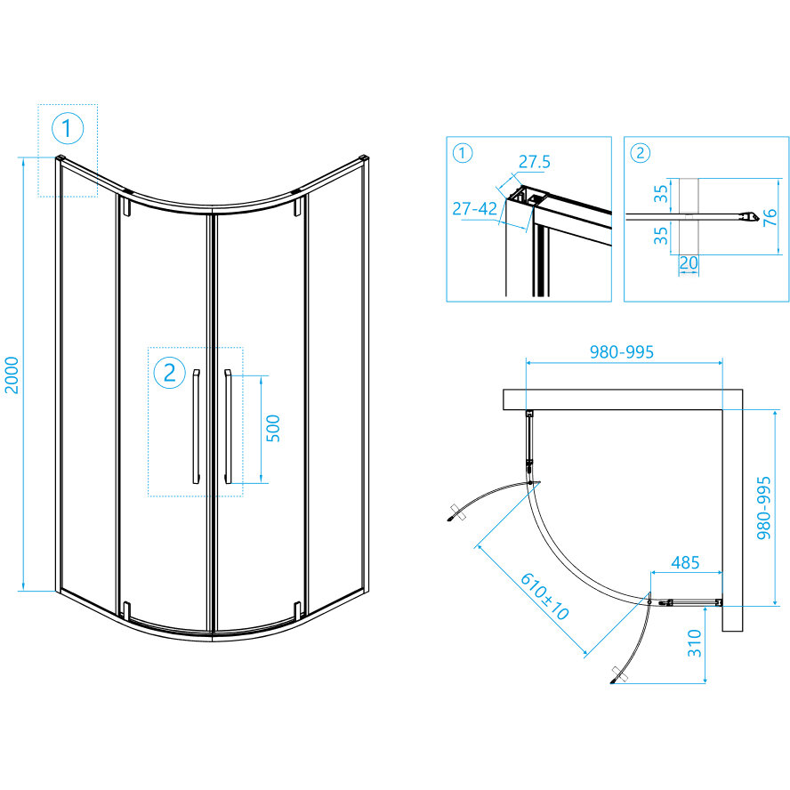 Душевой уголок RGW SV-53B 100х100х200 стекло прозрачное