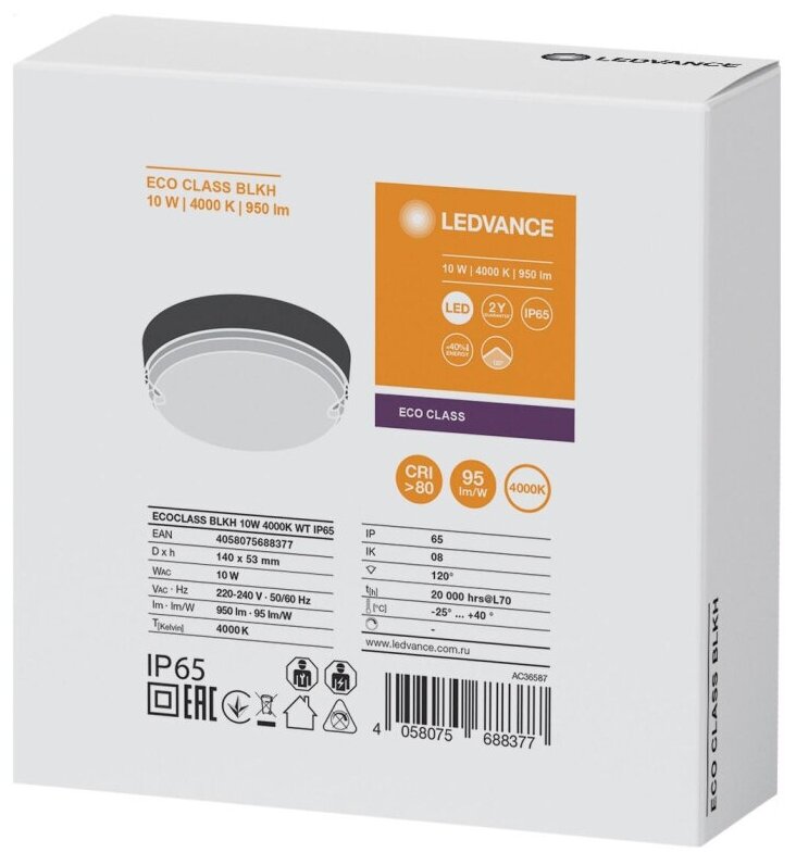 Светильник ЖКХ светодиод LEDVANCE ECOCLASS 10Вт 4000К IP65 4058075688377