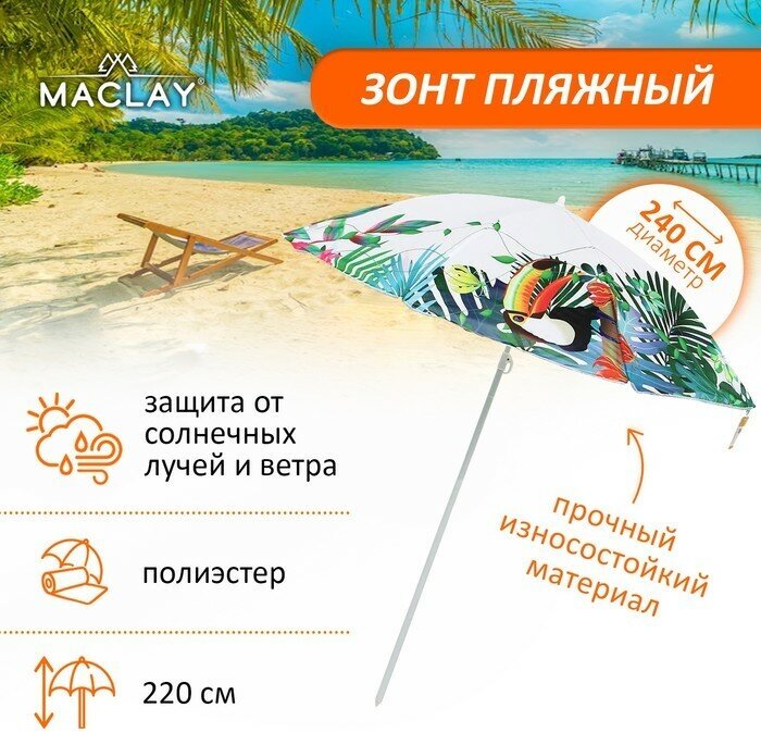Зонт пляжный Maclay d=240 см h=220 см 5269781 . интересное:
