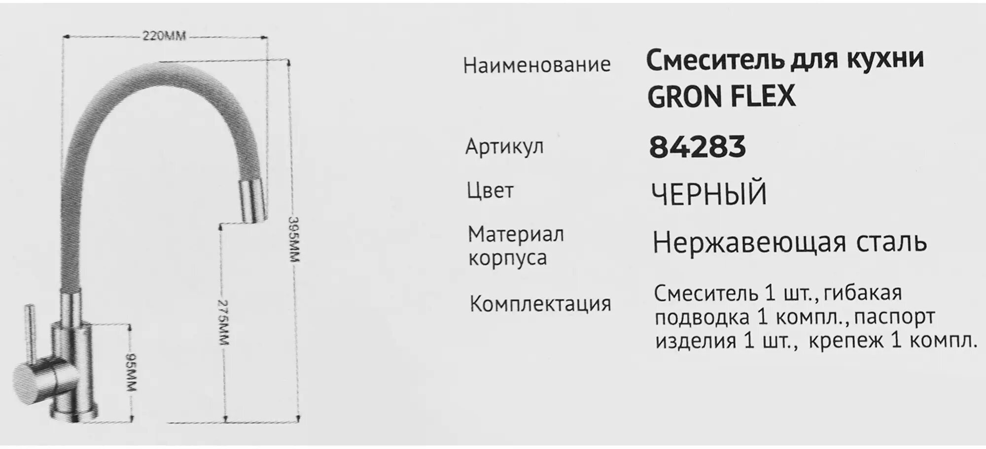 Смеситель для кухни Osgard Gron Flex цвет чёрный 84283