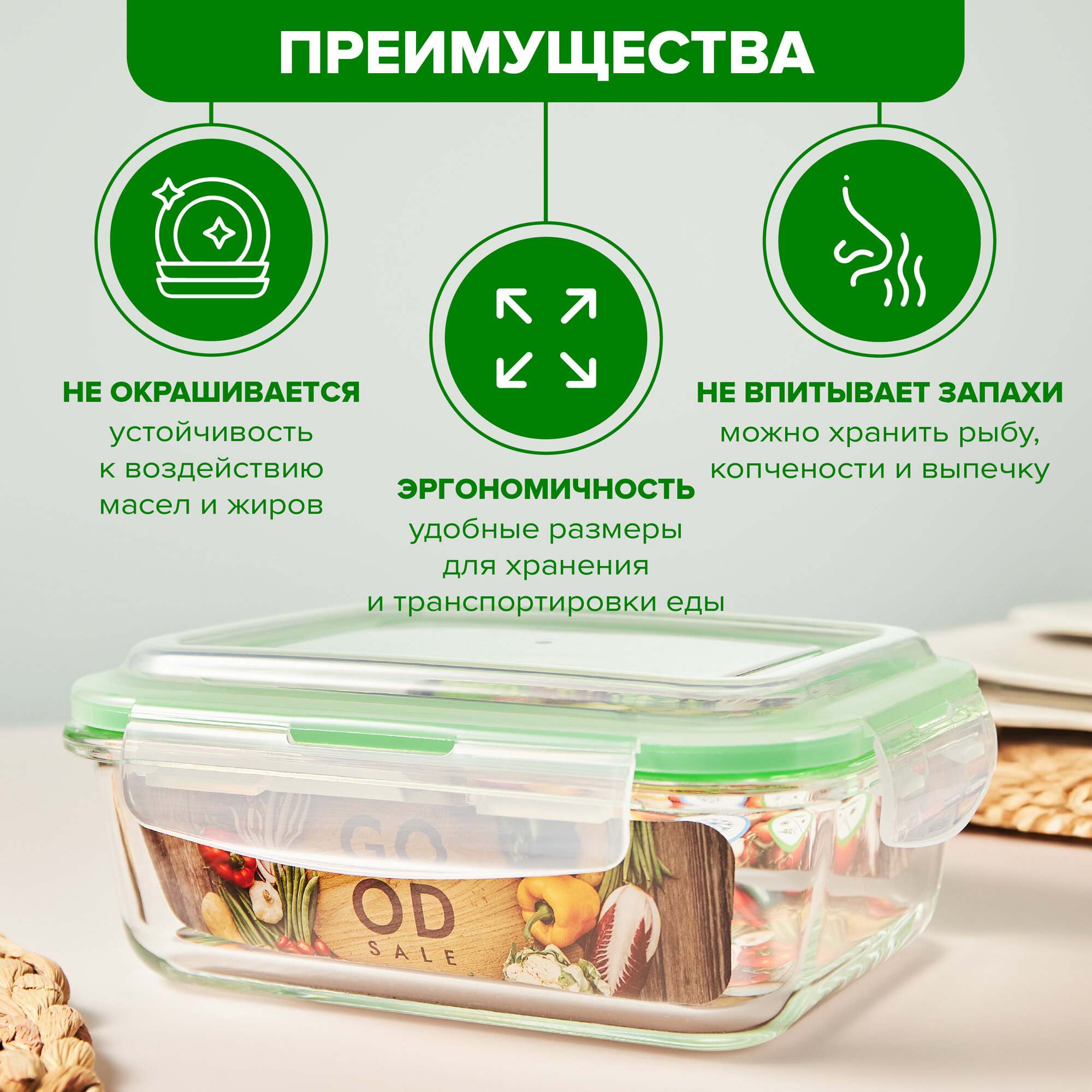 Контейнер стеклянный прямоугольный 1000 мл с крышкой Good Sale интересное: