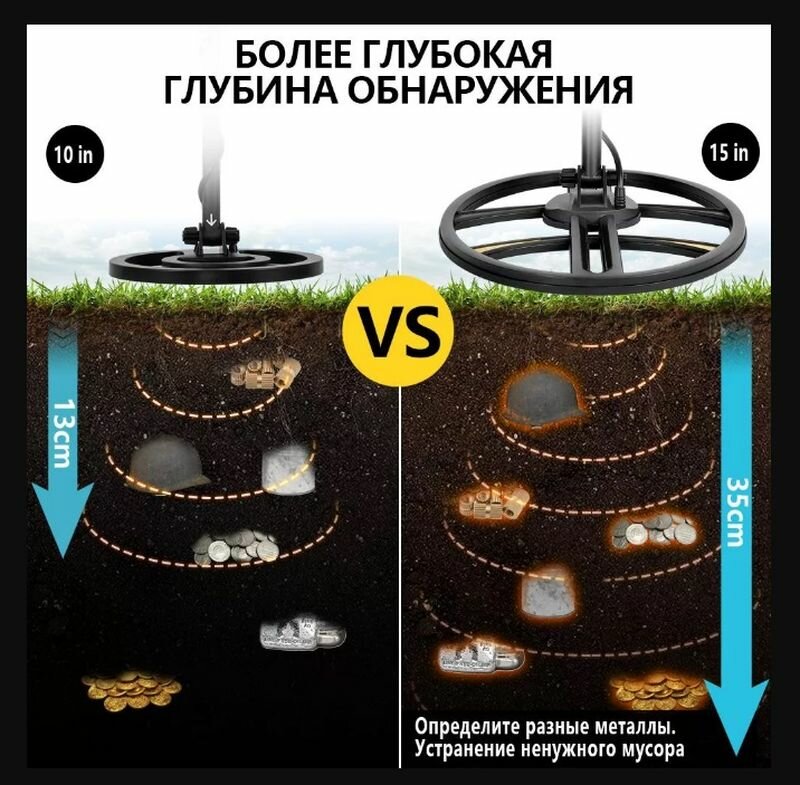 | Дополнительная информация | батарейки приобретаются отдельно; регулируемая по длине ручка; глубина обнаружения монет: 10 см |