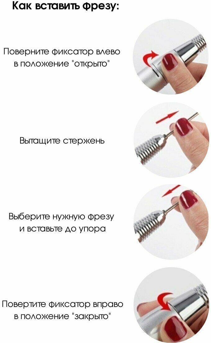 | Особенности | набор фрез в комплекте / отсутствие вибрации / плавная регулировка / подставка для наконечника |