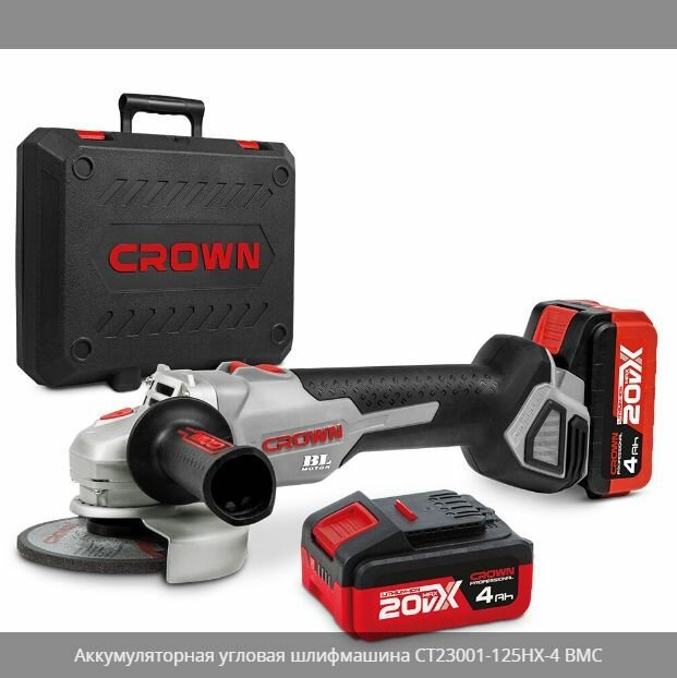 Углошлифовальная машина аккумуляторная CROWN CT23001-125HX-4 BMC интересное: