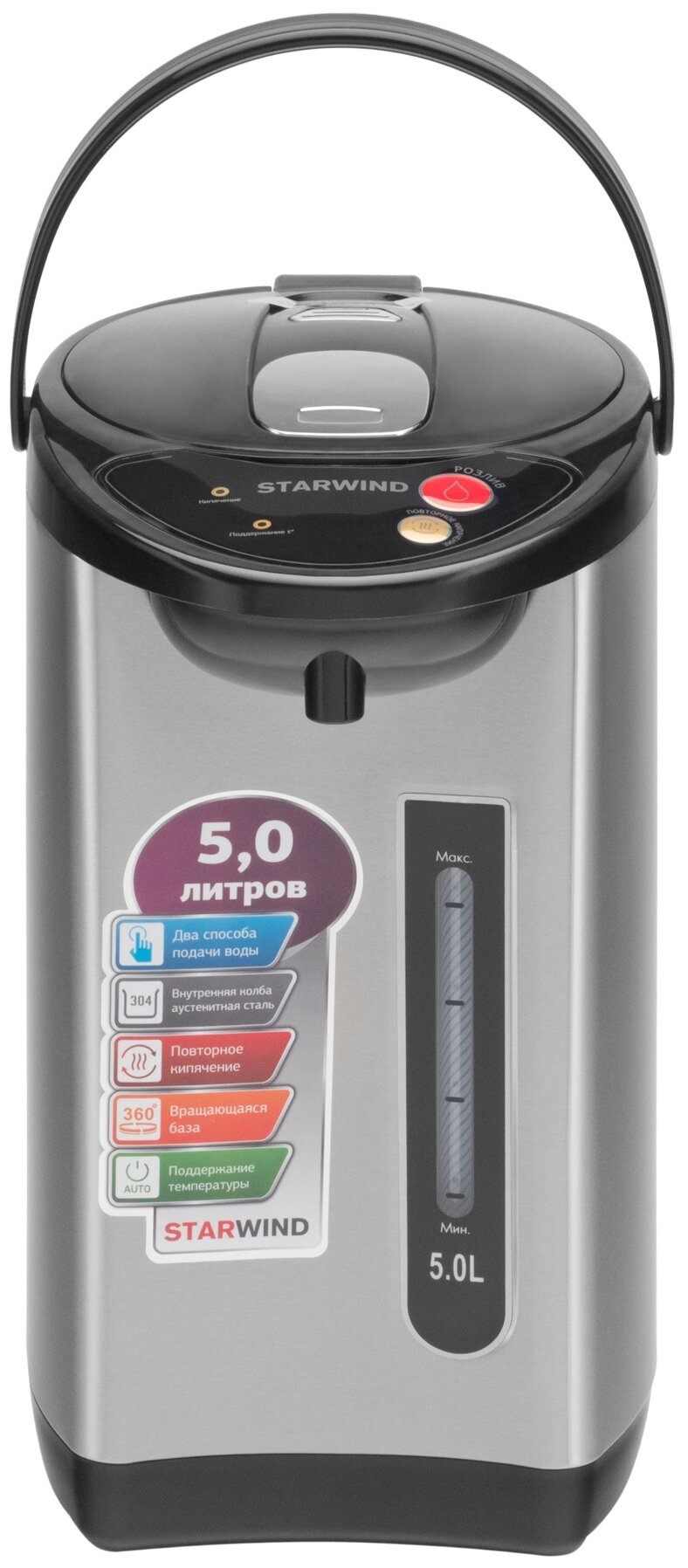 Термопот StarWind STP2251 750 Вт серебристый чёрный 5 л пластик интересное:
