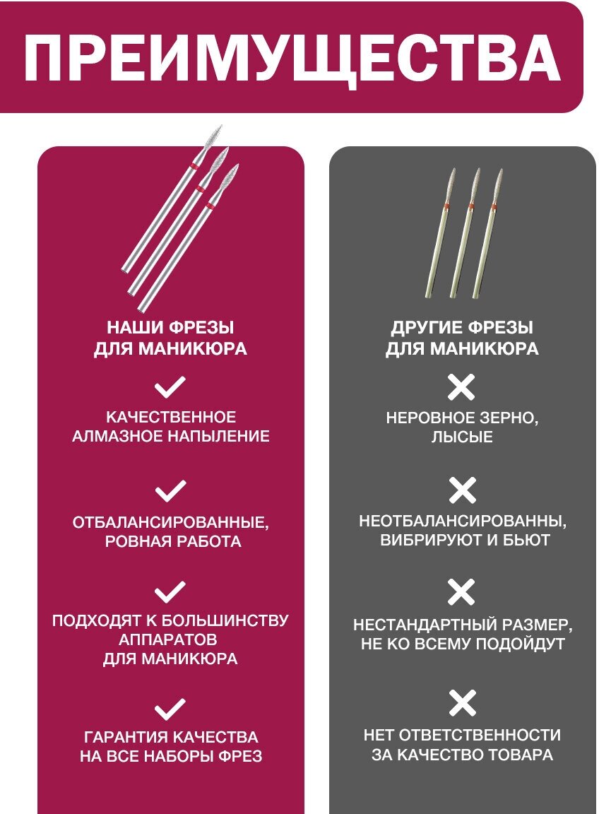 СохранитьФрезы алмазные для маникюра и педикюра пламя 3шт 2,3мм набор для профессионального маникюрного аппарата, дизайна, полировки ногтей, кожи и кутикулы интересное: