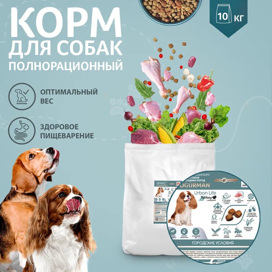 ZOOGURMAN URBAN LIFE для взрослых собак маленьких и средних пород с индейкой (10 кг)