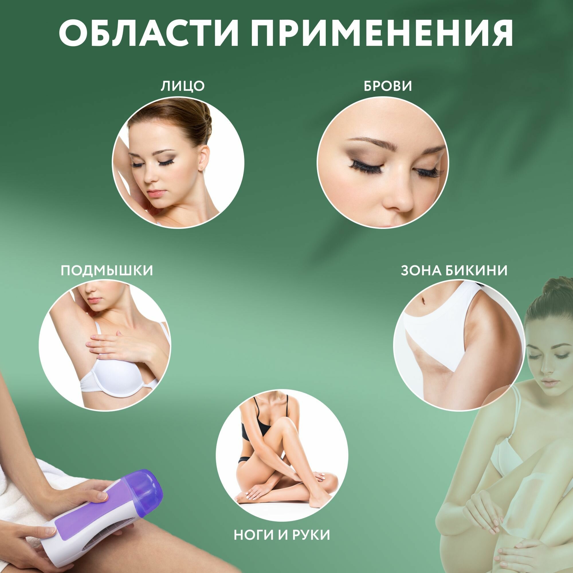 | Сфера применения | бикини, ноги, подмышки, руки, спина, Зона бикини, Тело |