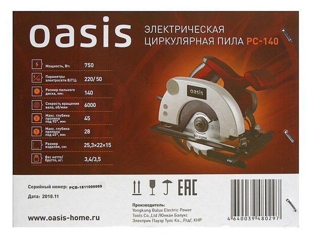 Ниже Вы можете прочитать отзывы на OASIS PC-140 Циркулярная пила, ознакомится с подробными характеристиками, посмотреть интересные обзоры и фотографии на OASIS PC-140 Циркулярная пила.