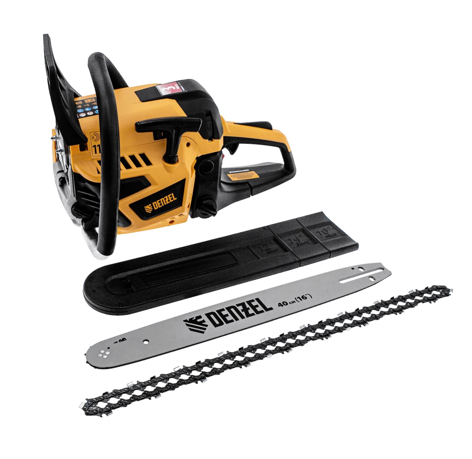 Пила цепная бензиновая DS-4516, шина 40 см, 45 см3, 2,5 л.с, шаг 0,325, паз 1,5 мм, 64 звена Denzel