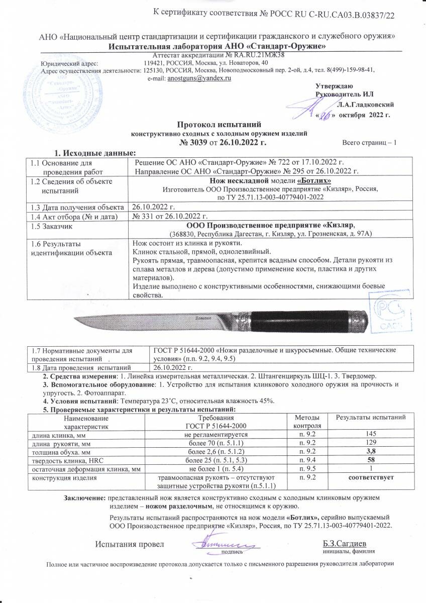 Нож Ботлих интересное: