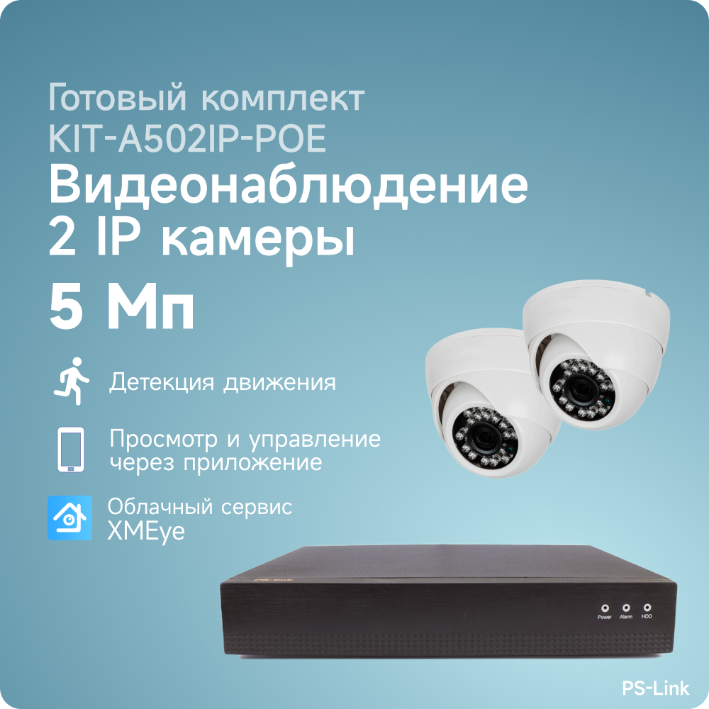 Купить Комплект IP-POE видеонаблюдения PS-link A502IP-POE 2 внутренние 5 Мп камеры