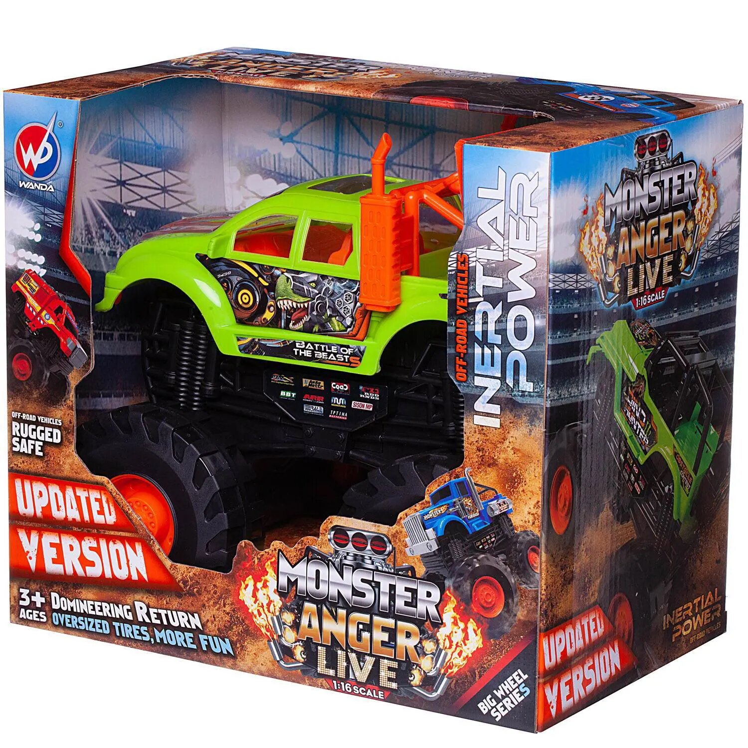 Машинка Джип-внедорожник 4х4 Гнев монстра, 1:16, зелено-оранжевая - Junfa Toys [WC-11589/зелено-оранжевая]