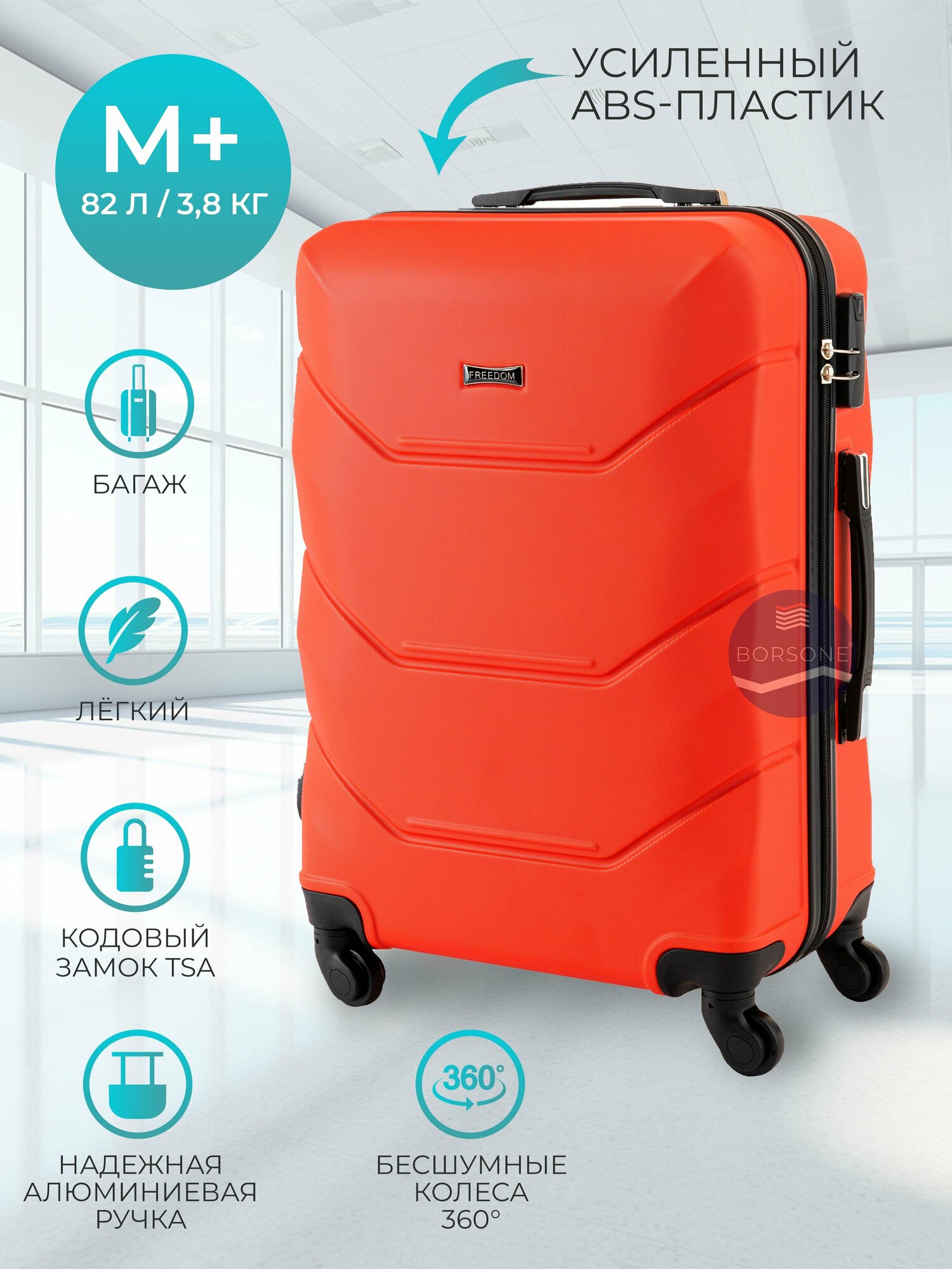 Пластиковый чемодан на 4-х колесах/Багаж/Средний M+/82Л/Прочный и легкий ABS-пластик
