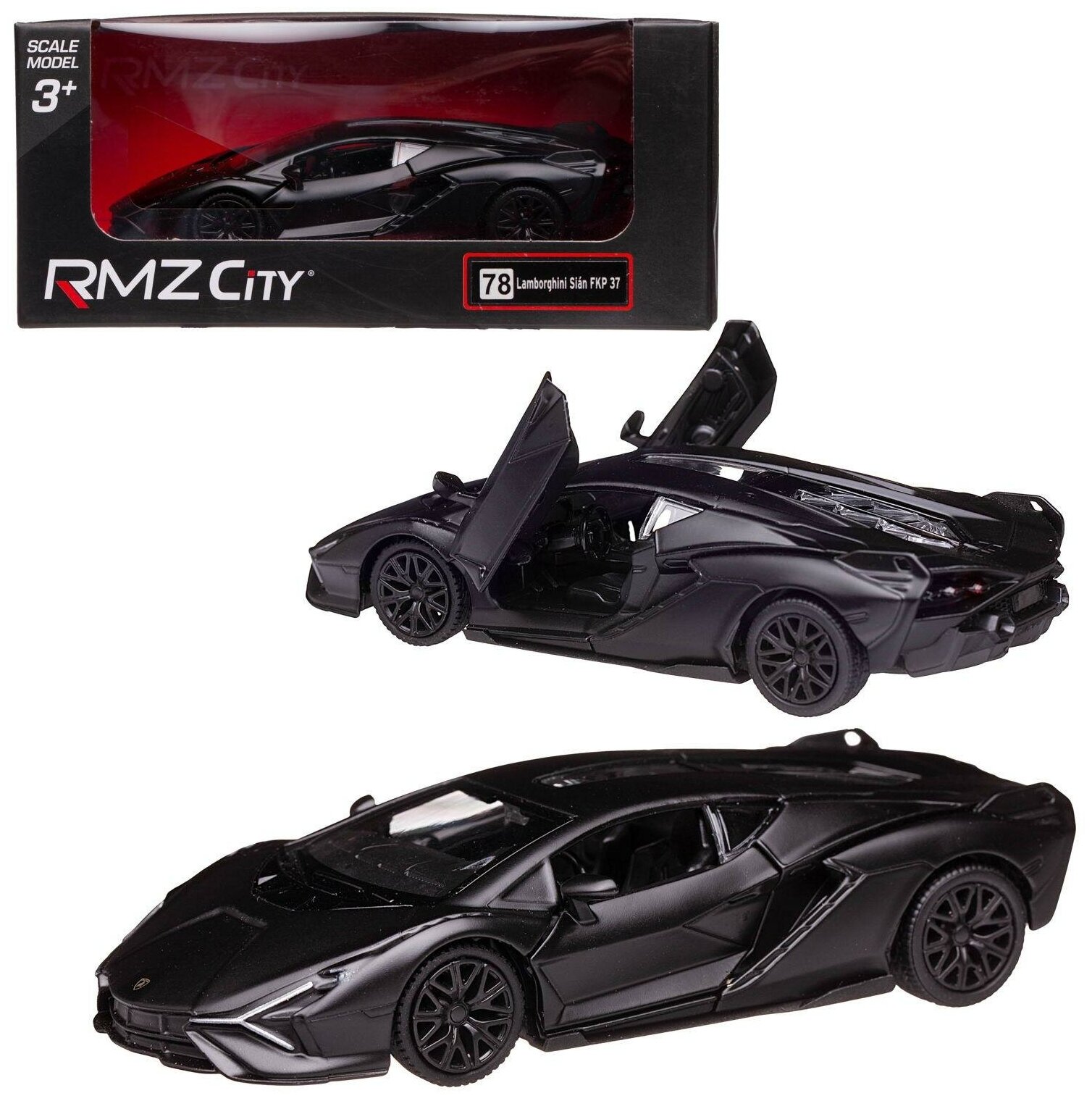 Купить Машина металлическая RMZ City 1:32 Lamborghini Sian, черный матовый цвет, двери открываются