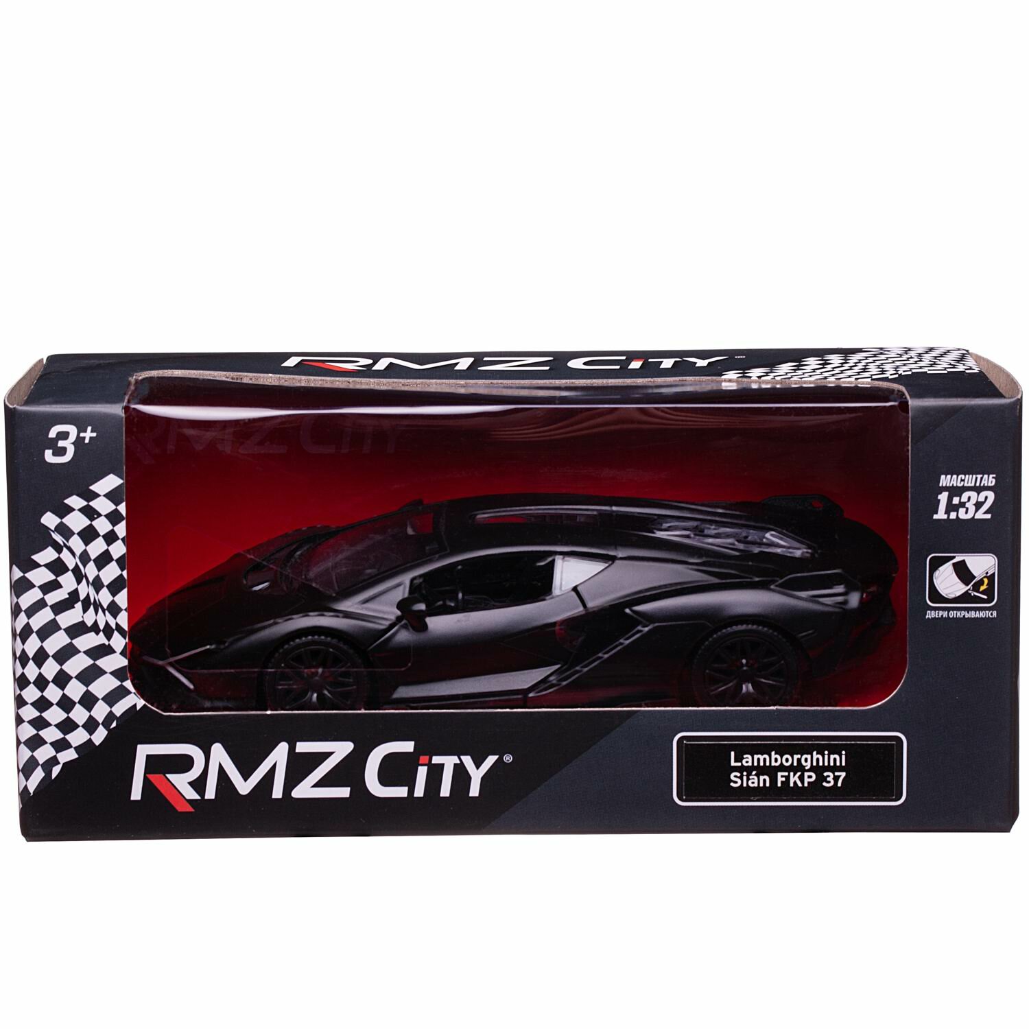 Машина металлическая RMZ City серия 1:32 Lamborghini Sian, инерционная, черный матовый цвет, двери о