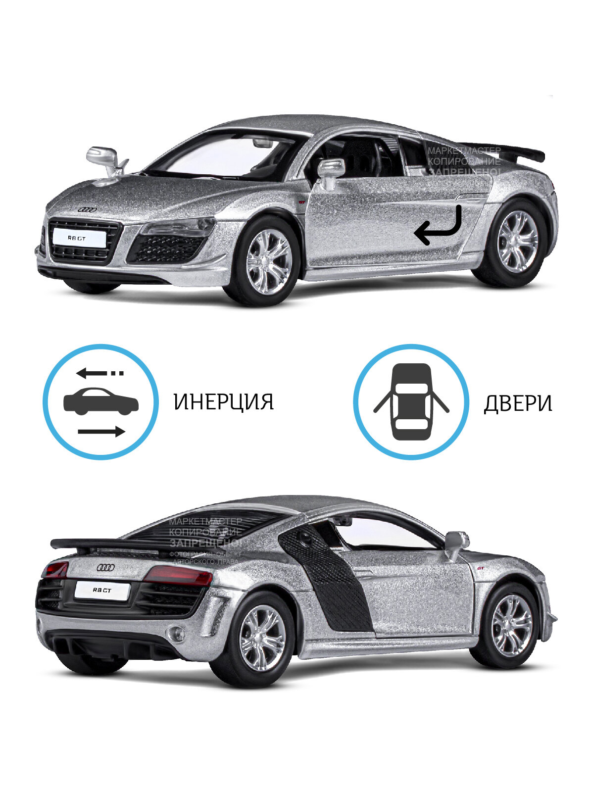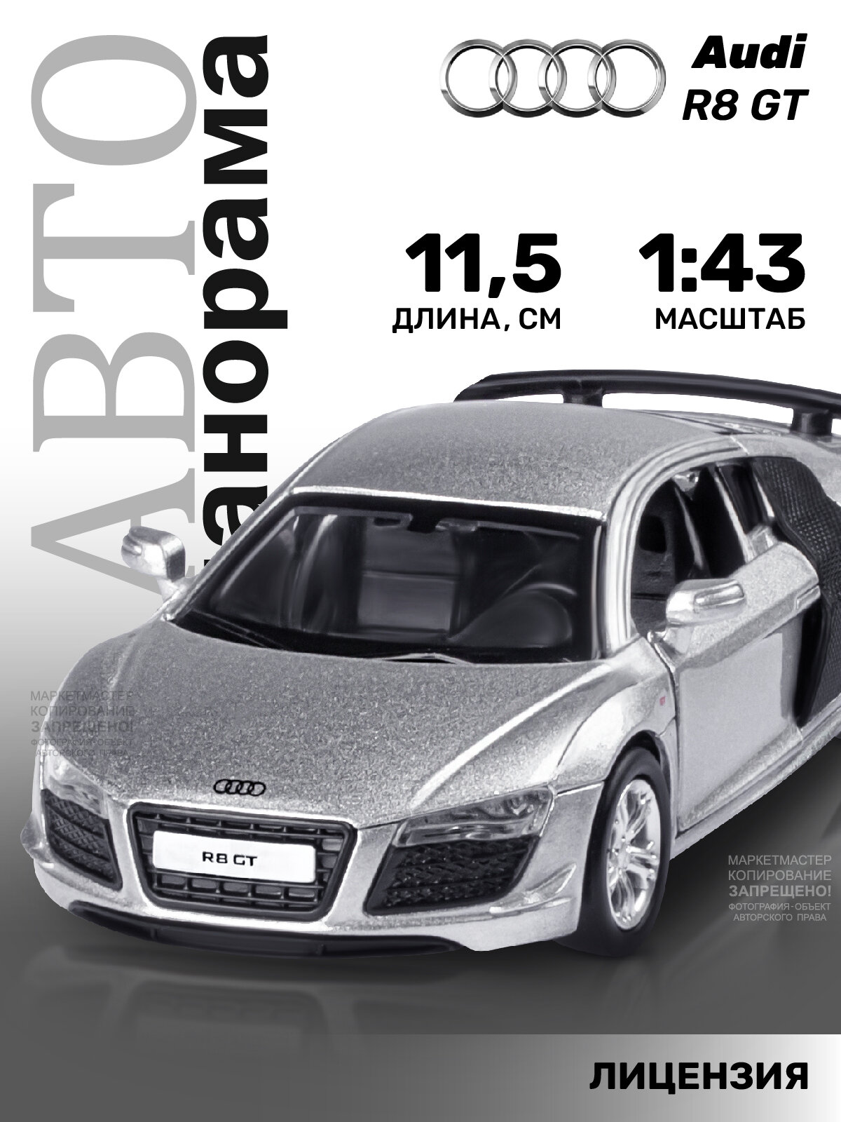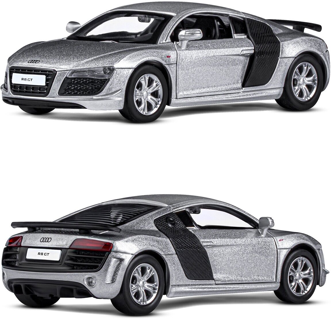 Машинка металлическая ТМ "Автопанорама" 1:43 Audi R8 GT, серебро, инерция, откр. двери
