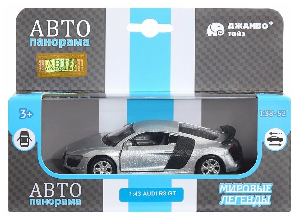 Легковой автомобиль Автопанорама Audi R8 GT 1:43, 11.5 см, серебристый