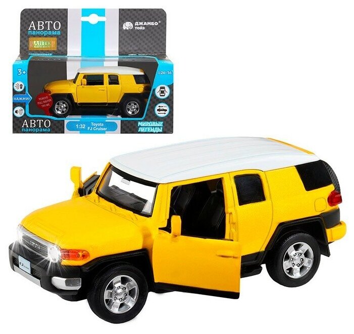 Автопанорама Машина Автопанорама Toyota FJ Cruiser, желтый, 1/32, свет, звук, инерция, в/к 17,5*13,5*9 см - JB1251389