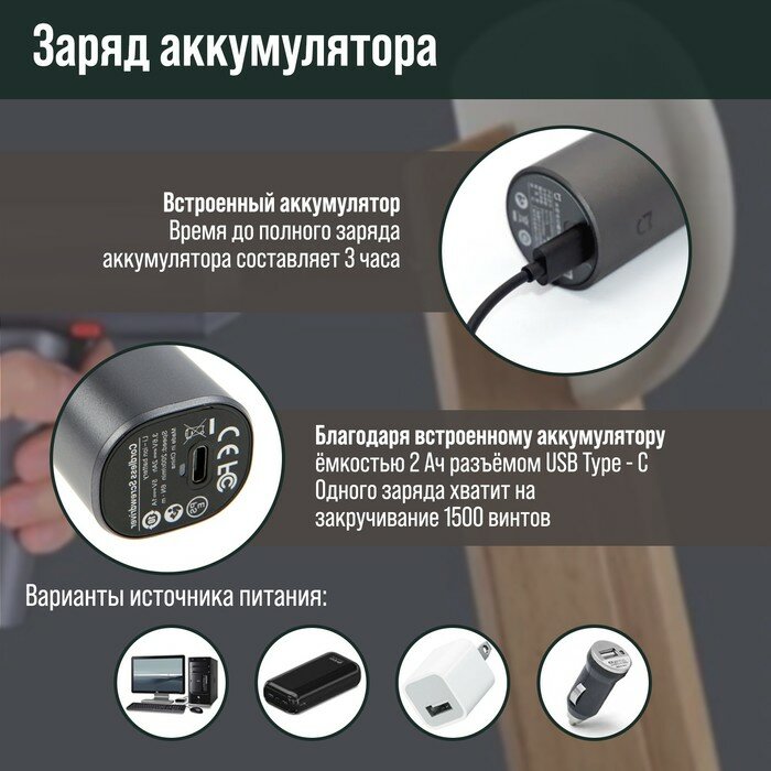 Аккумуляторная отвертка профи, 3.6 В, 2 Ач, Li-ion, 220 об/мин, 12 предметов, кейс интересное: