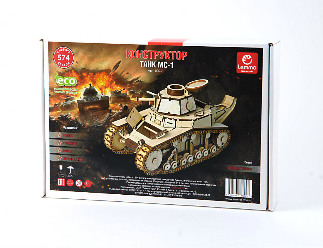 Деревянный конструктор Lemmo Танк МС-1, 574 детали, LM-0025