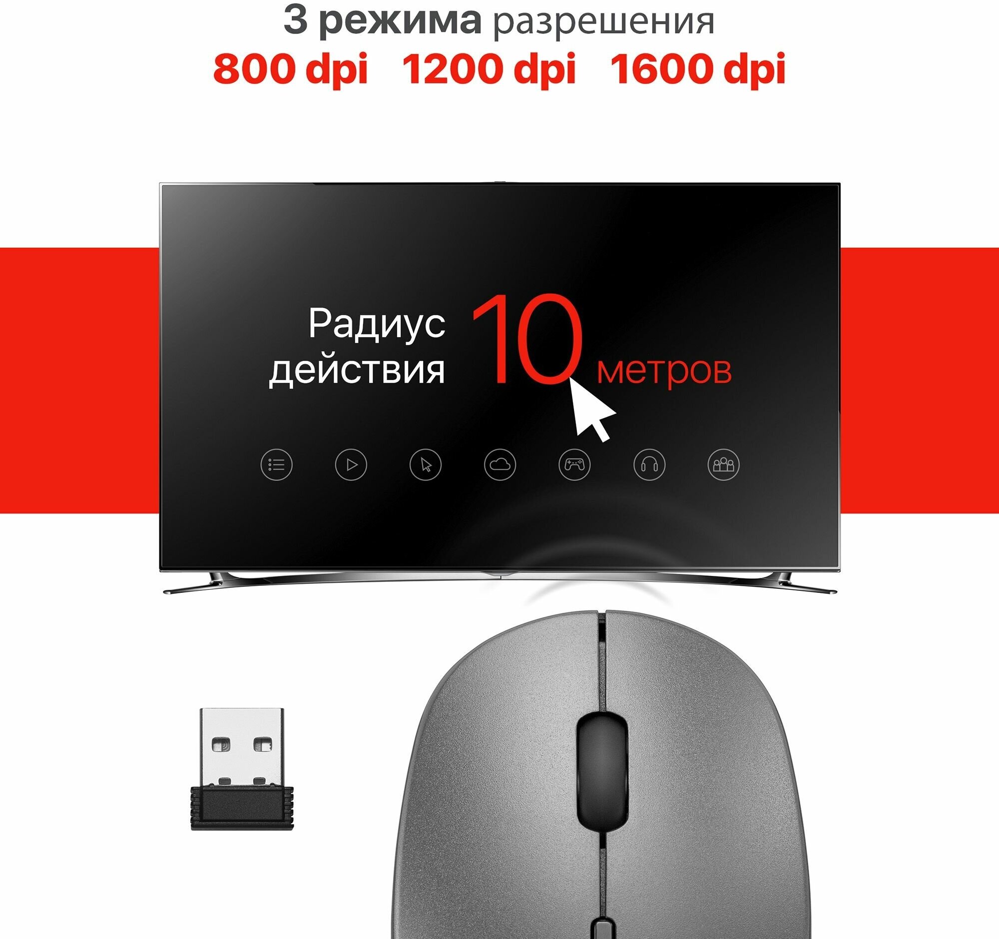 Defender Беспроводная оптическая мышь Auris MB-027 серый, 4D, 800-1600dpi, бесшумная.