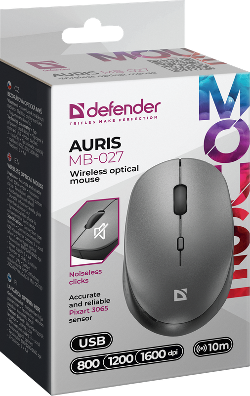 DEFENDER Auris MB-027 серый, 800-1600dpi,бесшумная