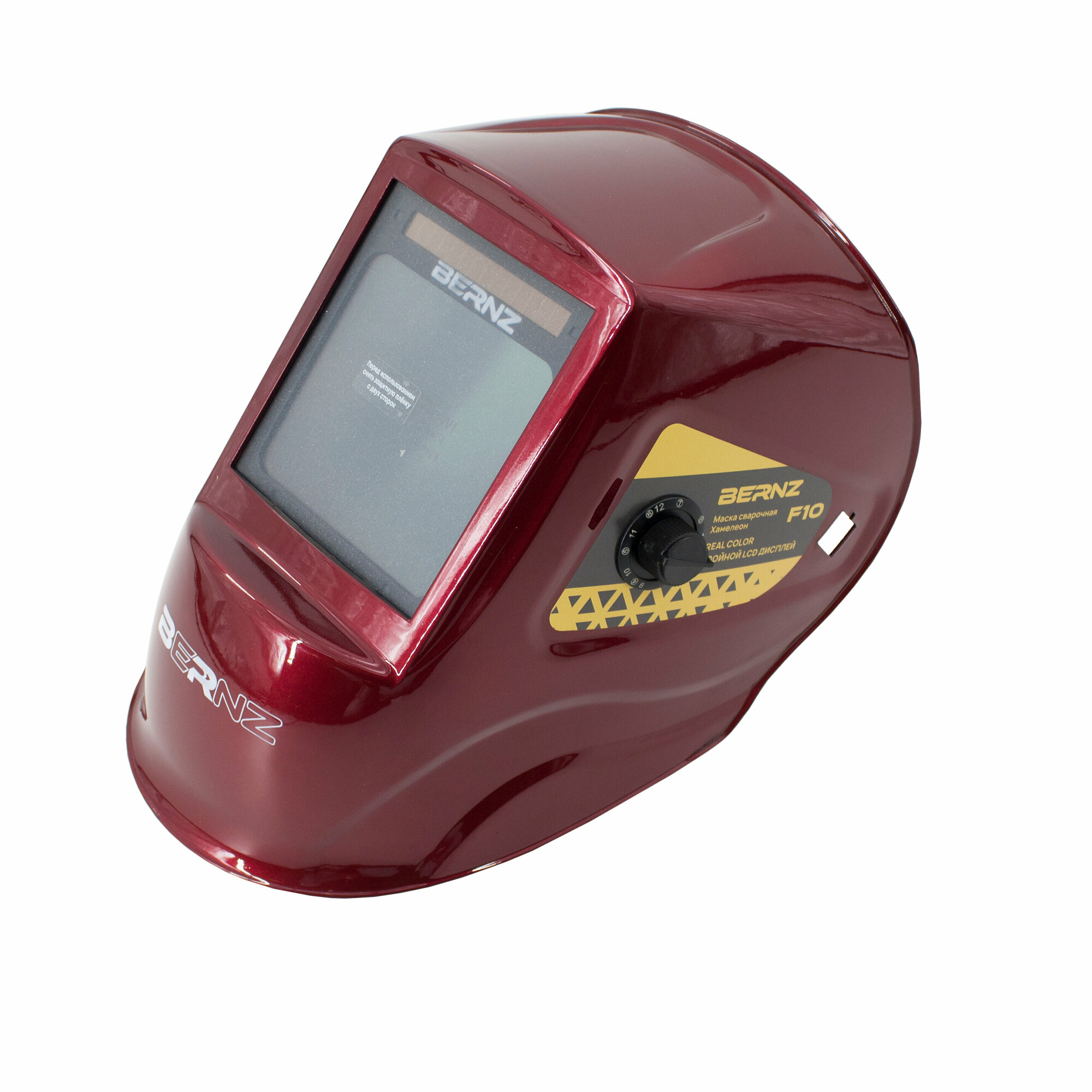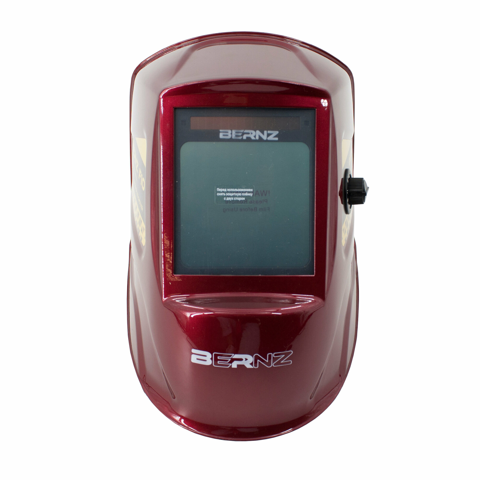 Маска сварщика BERNZ Ф10 красная, Хамелеон 103х90 мм, DIN 3/4-8/9-13, внешняя регулировка, в коробке