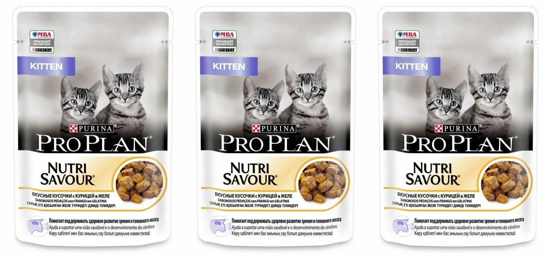 Купить Pro Plan влажный корм для котят,кусочки с курицей в желе, 85 г, 3 шт
